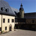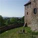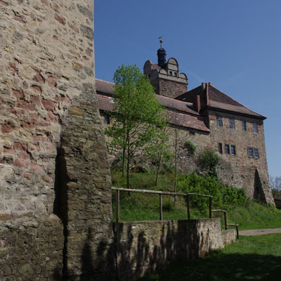 "Das heutige Schloss steht auf einem nach Westen aus der Hochfläche vorspringenden Geländesporn. Es wird durch Grabenreste und Gebäudegruppen in drei hintereinanderliegende Teile gegliedert. Auf dem östlich anschließenden Acker befindet sich eine breite Senke, die als Rest eines Halsgrabens angesehen wird."