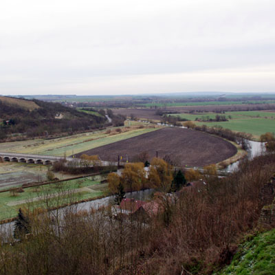 Die Unstrut bricht sich, vom Thüringer Becken kommend, hier durch die Höhenzüge von Hainleite und Schmücke ihren Weg auf ihrem nördlichen Lauf.