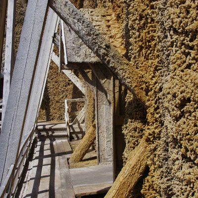 Durch die feine Zerstäubung der Sole herrscht in der Nähe von Gradierwerken ein der Seeluft ähnliches Mikroklima. |