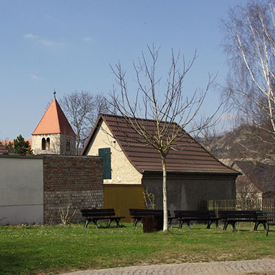 In den unregelmäßigen Grundriss eines Haufendorfes gliedert sich nördlich der ehemalige Rittergutskomplex ein. |