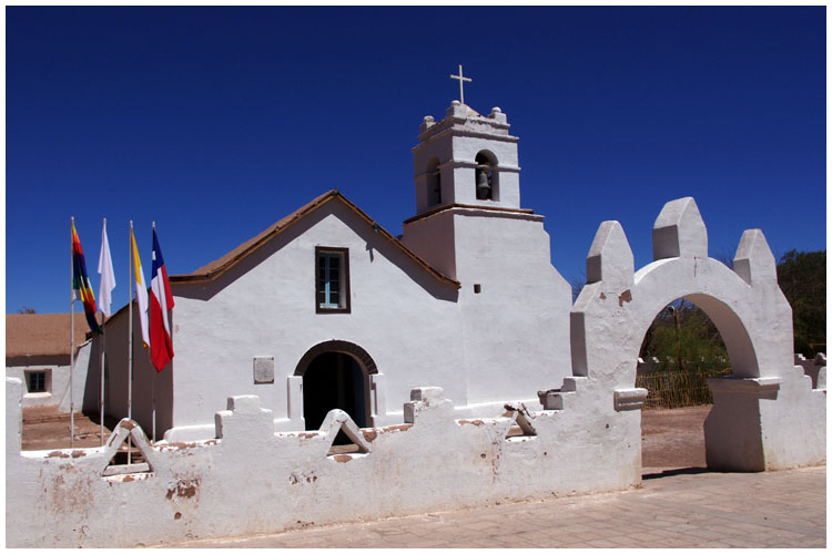 Die kleine Kirche mit ihrem archaisch anmutenden Glockenturm von 1964 zählt zu den Highlights der Oase. |
