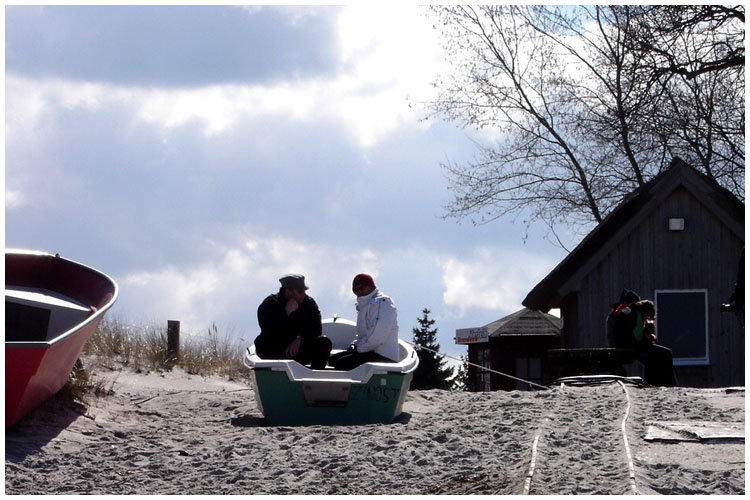 "Zingst erwartete uns mit warmen Sonnenstrahlen. Die ersten Feriengäste flanierten am Strand entlang und zwei Angler versuchten ihr Glück in der still daliegenden See."