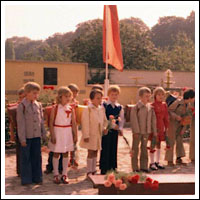 Die sozialistische Provinz hatte ihren eigenen Charakter entwickelt und war trotzdem zwischen Müritz und Eichsfeld, Zschopau und Schwielochsee gleich. Gleich auf Seite 3 des Heimatkundebuchs begrüßte uns der Vorsitzende des Staatsrates und wir lernten neben dem sozialistischen Aufbau im Heimatort die Kampfgruppen der Arbeiterklasse und unsere sowjetischen Befreier frühzeitig kennen. Wir lernten unter „Hammer und Sichel im Ährenkranz“ anzupacken, Subbotniks umzusetzen und Pioniernachmittage zu gestalten. Wir gelobten „zu lernen, zu arbeiten und zu kämpfen, wie es Ernst Thälmann lehrt.“ und tauschten zuerst unser blaues gegen das rote Halstuch und dieses dann gegen das Blauhemd der FDJ. Ebenso notgedrungen und gelangweilt wie „die Zirkel unter der blauen Fahne“ ließen wir die Einführung in die marxistisch-leninistische Philosophie im Staatsbürgerkundeunterricht über uns ergehen. Unser Schuldirektor nahm sich selbst unserer sozialistischen Erziehung an. Er versuchte die Jungs für den langjährigen „Ehrendienst“ in der NVA zu erwärmen und fand es sicher praktisch, selbst zwei Töchter zu haben, von denen eine nach dem Mauerfall zwischenzeitlich nach Zypern zog. Manche Lehrer sahen dass wie unsere Klassenbeste pragmatischer. Als ehemalige SED-Mitglieder, FDJ-Leiter oder GOL-Vorsitzende nutzten sie bereits früh die „Westverwandschaft“ ihrer Omas. Nach den heißen Wendejahren fühlten sie sich wieder frei ihrer eigenen sozialistischen Propaganda und für Taufe und Kirchenerhalt prädestiniert.