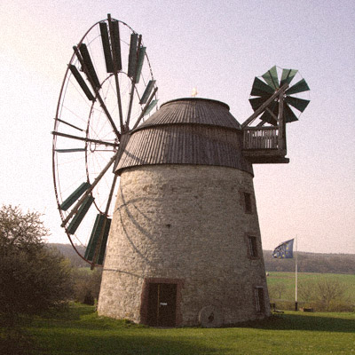 Die Turmwindmühle auf dem Sachsenberg brannte mehrfach aus, wurde jedoch immer wieder erneuert. Statt der in diesen Regionen üblichen Flügeln besitzt die aus dem Jahr 1831 stammende Mühle ein zehnspeichiges Windrad.