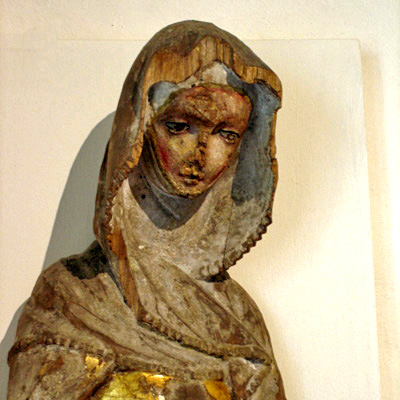 Die Holzfigur der heiligen Elisabeth aus dem 14.Jahrhundert in den ehemligen Betstuben. Elisabeth von Thüringen wurde für ihre Nächstenliebe und Barmherzigkeit 1235 heilig gesprochen. Die ungarische Königstochter nahm mehrfach an politischen Zusammenkünften der landgräflichen Familie auf der Neuenburg teil.
