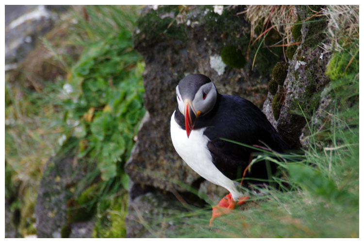 "Paolo führte uns über versteckte Pfade entlang der Steilküste zur Papageitaucherkolonie die sich ihre Nachbarschaft mit Eissturmvögeln und zänkischen Möwen teilen musste."