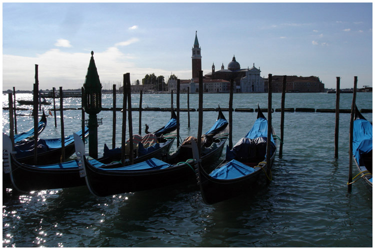Die Insel mit der Benediktinerabtei hebt sich markant gegenüber der Piazzetta aus der Lagune ab.