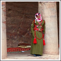 Die Felsenstadt Petra, holdes Kulturdenkmal und UNESCO Welterbe, das seit der Kreuzzüge kein Europäer mehr betreten hatte, beschritten wir wie die alten Nabatäern und hunderte andere Touristen durch den schmalen Sik, die 1,5 Kilometer lange Felsspalte, an dessen Ausgang sich das Khazne al-Firaun erhob. Wir ließen uns Zeit für die größte Sehenswürdigkeit des Nahen Ostens und die zahllosen Grabmale, in Fels getriebene Fassaden, Bäder, Theater und Felszeichnungen. Über die Hauptstadt wurde bereits so viel geschrieben, dass dies hier nicht mehr vonnöten ist. Auch wenn von den 628 Gräbern noch heute weniger als zehn erforscht sind. Die Beduinen, die mit Sondergenehmigung zwischen Schatzhaus und Hohem Opferplatz, Sextius-Florentinus-Grab und Palastgrab leben, treiben geschäftsgierig ihre Pferde, Kamele und Kinder hinter den Touristen hinterher; quälen Esel fettleibige Amerikaner den steilen Bergpfad durch das Wadi Kharareeb zum Felsentempel ad-Deir hinauf. Kein Klischee, nur traurige Wahrheit und ziemlich widerwärtig.