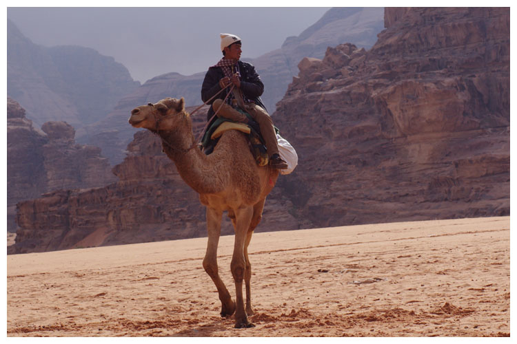 "Die jordanische Tourismusbehörde stellte uns einige Jeeps nebst Fahrer zur Verfügung, deren wichtigsten Pausen in einem arabischen Beduinenzelt mit Kamelritt und Picknick mit Tee mündeten."