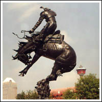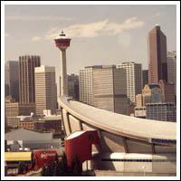 Ich landete spät in Calgary, holte mir den von Deutschland aus gebuchten Mietwagen, einen Chevrolet mit dem verheißungsvollen Kennzeichen 530-EVA und buchte mir ein Motel am Trans-Canada Highway in unmittelbarer Nähe zum Unicampus für geschlagene zweiundachtzig kanadische Dollar. Meinen ersten Abend beschloss ich mit einem saftigen Steak und Moosehead Bier. Calgary, das waren für mich Cowboy Land, Rodeo, Stampede und Olympische Winterspiele von 1988. Hier holten die DDR zum letzten Mal hinter der UdSSR Medaillen auf dem Siegertreppchen. Doch selbst achtzehn Jahr später wehte die Fahne des ersten deutschen Arbeit- und Bauerstaates vom Olympiapark herunter. Vom Calgary Tower aus lagen Saddle Dome und Stampede Park ebenso im dunstigen Nebel wie der nahe Bow River. Doch die Wolken rissen auf, als ich die 9 Avenue zum Bow River hinunterlaufe. Downtown Calgary endet mit seinen gläserneren Skycrapers abrupt und Fort Calgary liegt vor mir. Murmeltiere verschwinden pfeifend und blitzschnell in ihren Erdhöhlen.