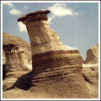 Es sind etwa 14 Kilometer bis Drumheller, östlich von Calgary in das weite, offene Gebiet von Alberta. Sanfte Hügel bestimmen hier die Landschaft; Getreidefelder berühren den Horizont. In den Alberta Badlands fällt die Prärie plötzlich ab, um ein düsteres Tal freizugeben, in dem viele stillgelegte Kohlenschächte und die kleine dunkle Stadt Drumheller liegen. Die Gegend, früher das Land der Schwarzfuss-Indianer, ist heute für seine Dinosaurier bekannt. Der Dinosaurier Trail führt westlich von Drumheller am Red Deer Valley entlang, dem Schmelzwassereinschnitt der Gletscher in die Prärie. Im Horseshoe Canyon führt ein Weg an versteinerten Bäumen, Fossilienfunden und Dinosaurierknochen entlang.