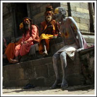 Ein etwa 14jähriger Junge kam auf mich zu. „How are you? Wher do you come from? You are American? From Europe? Frances? A, Germany. Ich spreche auch Deutsch. Spreche sehr gut, kenne Goethe, Heine und Clausewitz.“ Es sprudelte nur so aus ihm heraus. Ich konnte seiner Neugier und Offenheit kaum nachkommen. „Du brauchst keine Angst zu haben. Ich will Dir nichts verkaufen. Almosen möchte ich nicht. Aber benötigst Du noch etwas? Wo ich Deutsch gelernt habe? In der Schule und hier mit den Menschen? Nein, ich muss jetzt nicht zur Schule, wir haben frei.“ Die schnelle Improvisationsgabe des Jungen verblüfften mich. „Sind das da vorn Deine Freunde? Vielleicht benötigen sie noch etwas?“ Leider konnte ich ihm nicht helfen und gab ihm meine letzten Kaugummis. Wichtig dreinblickend ließ er von mir ab und versuchte sein Glück bei einem jungen Pärchen wenige Meter neben uns. Als ich mich umblickte, bemerkte ich einige Saddhus, den Körper mit Asche eingerieben und die verdreckten, langen Haare in einem überdimensionalen Knoten auf dem Kopf zusammengebunden. Je verrückter, umso besser und einträglicher. Die heiligen Männer waren geschäftstüchtig, mit Handys ausgestattet und streckten jedem, der sie ohne Erlaubnis fotografieren wollte, sofort ihre Hand entgegen. Keine Rupie kein Foto.