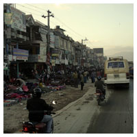 Der plötzliche Wetterwechsel, die drückende Schwüle, das endlose Warten, Hupen und Geschaukel während der Fahrt ließen mich innerhalb weniger Stunden zusammenbrechen. Auch wenn ich nicht ganz zusammenbrach, so sah ich doch alles nur wie hinter einer dünnen Nebelwand. Vermutlich lag es auch daran, dass plötzlich zu viele neue Eindrücke auf mich einhämmerten. Vielleicht auch daran, dass ich im Kloster Sakya die Kora im falscher Richtung gelaufen war? Oder waren es die ersten Anzeichen einer Grippe? Die Armut der ehemaligen britischen Kolonie stieß mich ab. Wie reich war doch das Land mit seiner natürlichen Üppigkeit und wie bitterarm lebten hier die Menschen zwischen Müll und Unrat. Kinder bedienten die Gäste in billigen Restaurants, struppige Hühner fegten über die staubige Straße und Wohnzelte standen unter vom Staub eingefärbten Bananenstauden.
