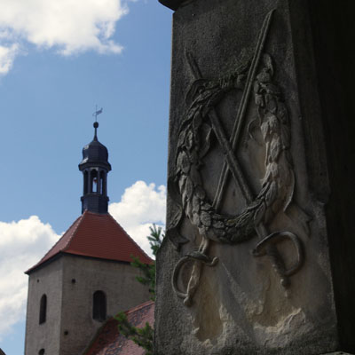 Von dem einst prächtigen Kriegerdenkmal sind nur noch die unter dem gemeißelten Eichenlaubkranz gekreuzten Schwerter deutlich zu erkennen. Die Inschriften sind längst verwittert und nur noch schwer zu deuten. Eingeweiht wurde das Denkmal am 12.September 1880.