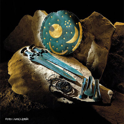 Neben der Himmelsscheibe wurden u.a. Schwerter, Keile und Reifen ausgegraben. Der Hortfund wird auf die frühe Bronzezeit (etwa 1600 v.Chr.) datiert. Das Landesmuseum für Vorgeschichte Halle achtet marketingbewußt argwöhnisch auf alle Veröffentlichungen, die im Zusammenhang mit der Himmelsscheibe stehen.