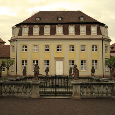 "Das Zentrum der gesamten Kuranlagen bildet die ursprüngliche Stelle, an der das Lauchstädter Heilwasser seit mehr als 300 Jahren an die Oberfläche tritt. Innerhalb einer von acht Putti „bekrönten“ Sandsteinbalustrade, die aus der Entstehungszeit von 1776 stammt, führt eine doppelläufige Treppe hinab."