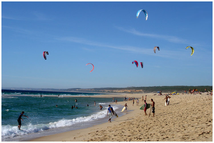 Der Strand in unmittelbarer Nähe von Sesimbra lockt mit seinen Winden zahlreiche Surfer an.