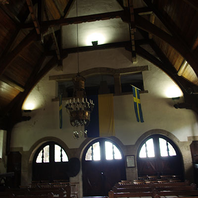 Der Dachstuhl der Kapelle erinnert an ein kieloben schwimmendes Wikingerschiff. |