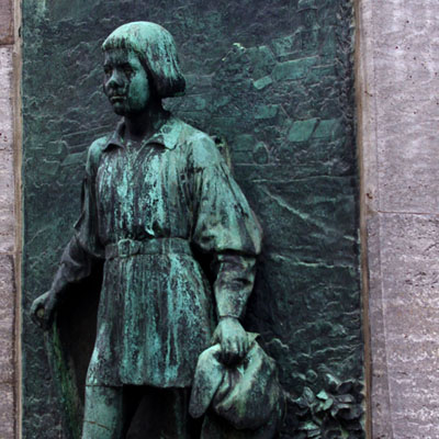 Der Lutherbrunnen wurde 1913 durch den Bildhauer Paul Juckoff geschaffen und zeigt den 13-jährigen Luther mit Wanderstock und Schülerhut. |