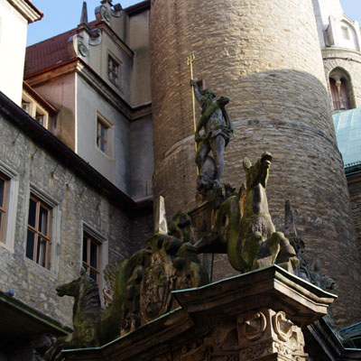 Der Architekt Brenner, über den es während der Bauzeit etliche Beschwerden gibt, holt den Freiberger Steinmetzmeister Simon Hoffmann nach Merseburg. Die Wendeltreppe des „Kammerturmes“ mit ihren Verzierungen, das Brunnenhaus in der Südecke des Schlosshofes oder der Erker der Nordfront sind die architektonischen Schmuckstücke der barocken Meister.