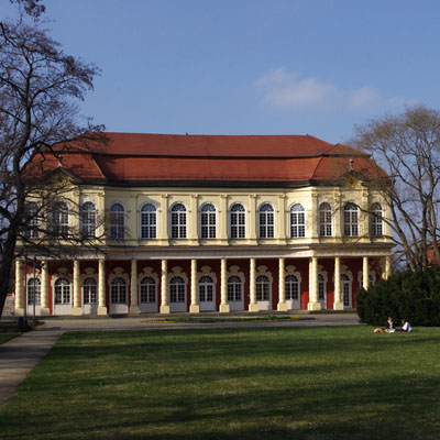 "Johann Michael Hoppenhaupt wird 1730 die Leitung über die Gestaltung der großzügigen Anlage des Schlossgartensalons übernehmen. Mit den zwei kleinen Orangeriegebäuden, wovon das westliche im Fliegerangriff 1945 zerstört wird, erhält der Garten im Norden einen repräsentativen Abschluss."