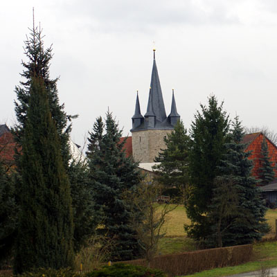 Die Kirche des kleinen Eichsfelddorfes wurde Ende des 16. Jahrhunderts mit seinem massiven Bruchsteinturm an Stelle des Vorgängerbaus errichtet.