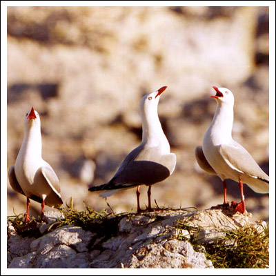 Hinter der Kurve endet die Straße. Nur ein schmaler Pfad schlängelt sich noch über die Klippen. Der Atlantik hat sich weit zurückgezogen. Auf den von der Ebbe freigegebenen Klippen sonnen sich zahllose Seelöwen im letzten Abendlicht. Keine zwei Meter neben mir hebt sich ein graues Weibchen unscheinbar vor dem grauen Felshintergrund ab. Kaikoura ist neben seinen Walen auch für seine Seelöwenkolonie bekannt. Ich setze meinen Weg fort. Ein ohrenbetäubender Lärm beherrscht den Küstenstreifen. Tausende brütende Möwen in roten Strümpfen und Schnäbeln warnen jeden Eindringling. Als ich den ausgewiesenen „Cliff-top walk“ weitergehe, passiere ich ziemlich nah die Brutplätze. Zu nah, wie ich erkennen muss. Plötzlich fliegen fünf bis sechs Möwen auf mich zu. Stoßen unter wütendem Geschrei tief zu mir hinunter. Die spitzen, feuerroten Schnäbel vor Augen läuft mir ein Schauer den Rücken hinunter. Ich fühle mich augenblicklich an Hitchcocks „Vögel“ erinnert und trete den Rückzug an. Jetzt gilt es nur die Nerven zu behalten. Schnell haben auch die Möwen erkannt, dass sie die Sieger sind und ziehen sich zurück.