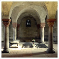 Die von Heinrich Himmler in den 1930er Jahren gestaltete Grablege König Heinrichs in der Stiftskirche St.Servatius zur germanischen Weihestätte ist heute der größte Besuchermagnet der Stadt. Reichsführer Himmler nutzte die Tausendjahrfeier des Todestages Heinrichs I. 1936 propagandistisch, entwickelte einen Kult um seinen Namensvetter und ließ den romanischen Chor der Kirche in eine pseudo-romanische Apsis umgestalten. Heute liegen die Gebeine Heinrichs und seiner Frau Mathilde, die eine Erbin aus dem Hause des letzten heidnischen Germanen Widukinds war, in der Krypta, deren mittelalterliche Deckenmalerei dank umfangreicher Sanierungsarbeiten in den Jahren 2002 bis 2009 gesichert wurde. Nach dem Tod Heinrichs in Memleben an der Unstrut wurde der Leichnam in der Pfalzkapelle auf dem Schlossberg bestatt und Mathilde gründete an gleicher Stelle ein Damenstift, dem sie selbst dreißig Jahre vorstand.