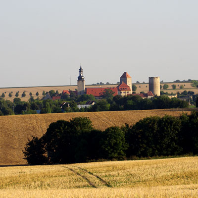 Die mächtige Burganlage hebt sich weithin sichtbar in der seit Jahrhunderten landwirtschaftlich geprägten Gegend ab. |