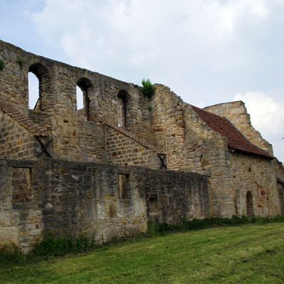 Die Ruine der Kirche St. Marien und Pankratius über der Aller ist schon von Weitem sichtbar. Hier befand sich im Mittelalter die Burg der Grafen von Walbeck, einem bedeutenden und angesehenen sächsischen Adelsgeschlecht. ... Der berühmteste Vertreter ist der Chronist und Bischof Thietmar von Merseburg (1009 - 1018). Graf Lothar II., Sohn Graf Lothars I., verschwor sich mit anderen sächsischen Adeligen gegen König Otto den Großen. Dieser sollte getötet und durch seinen Bruder Heinrich ersetzt werden. Die Verschwörung wurde aber vorher aufgedeckt und viele Beteiligte verhaftet und hingerichtet. Lothar II. wurde verschont und von Otto I. begnadigt. 942 errichtete Lothar II. daraufhin auf dem Gelände seiner Burg eine Stiftskirche als Sühne. ... Sie diente Lothar II. und seiner Familie als Grablege. Graf Lothar II. erhielt im Querhaus des ottonischen Gründungsbaus seine Grablege. Im 13. Jh. wurde aufgrund von Streitigkeiten beschlossen, die Burganlage zu zerstören und keinen Wiederaufbau erfolgen zu lassen. ... Bei Sicherungsarbeiten und Ausgrabungen im Querhaus, entdeckte man 1934 die Grablege des Stifters. Der Sarkophag mit Stuckaufsatz konnte geborgen werden und wurde in die Dorfkirche in Walbeck gebracht. Er ist eines der wenigen erhaltenen fürstlichen Grabmäler aus der ottonischen Zeit.