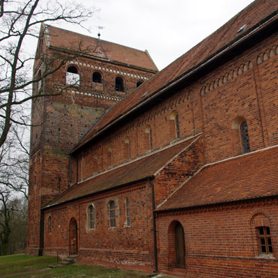 Bischof Segebodo von Havelberg weihte 1212 die romanische Backsteinkirche dem hl. Willebrord. Der Bau, der in seiner spätgotischen Prägung erhalten blieb, zeigt eine dreischiffige Basilika mit breitem Westquerturm und quadratischem Chor mit Apsis. 1562 wurde der Ort Eigentum der Bismarcks, die damit auch das Patronat über die Kirche erhielten. Im April 1815 erblickte hier der spätere Reichskanzler Fürst Otto von Bismarck die Welt und wurde in dieser Kirche getauft. Zudem sind noch zahlreiche Epitaphe der Familie Bismarck in der Kirche erhalten. Im Dreißigjährigen Krieg wurde die Kirche beschädigt. In den Jahren 1665 bis 1712 wurden die Schäden wieder behoben. Das Innere erhielt infolge dessen eine barocke Ausstattung, die Kanzel, den Altar und die Herrschaftsempore. Aus der frühen Zeit des 13. Jh. stammen das hölzerne Kruzifix und das Taufbecken aus Sandstein.