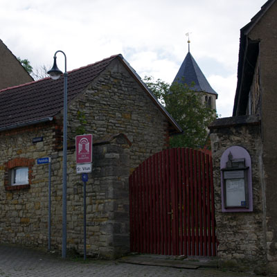 Die Besonderheit der Klosterkirche Gröningen ist ein achteckiger Vierungsturm, der den Anblick bis in die Ferne prägt und einzigartig in Sachsen-Anhalt ist. Das ehemalige Benediktinerkloster wurde 936 von der Abtei Corvey eingerichtet. Erhalten geblieben ist die Kirche St. Vitus. Sie verfügt zwar über den üblichen Kreuzgrundriss, unterscheidet sich aber durch den für armenische Kirchen üblichen, achteckigen Vierungsturm stark von hiesigen Kirchen. Der Kirchenbau ist eine typisch romanische, dreischiffige Basilika mit Querschiff, ausgeschiedener Vierung und dreiapsidialem Staffelchor. Leider ist sie nicht vollständig erhalten, da im Zuge der Reformation Seitenschiffe, Seitenchöre, die drei Apsiden und die Untergeschosse der vorgesehenen Westtürme abgerissen wurden. Der Ursprungscharakter als Basilika ging verloren. Trotz dieser Veränderungen ist die Klosterkirche St. Vitus eines der eindrucksvollsten Bauwerke an der Straße der Romanik. Entgegen dem schlichten Äußeren mit reizvollen Biforienfenstern, beeindruckt das Innere durch romanische Wandmalereien, Reliefs und Plastiken von hoher künstlerischer Bedeutung. Die Origniale der Emporenreliefs, welche Christus als Weltentrichter mit den 12 Aposteln zeigen, gelten als Beispiele des strengen Stils und zählen zu den wichtigsten plastischen Kunstwerken des 12. Jahrhunderts.