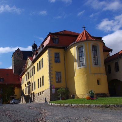 Im 11. Jahrhundert wurde das heutige Schloss als Kollegiatstift durch Graf Esiko von Ballenstedt, aus dem Geschlecht der Askanier, gegründet. Ende des 12. Jh. erfolgte der Umbau in ein Benediktinerkloster. Zu dieser Zeit entstand die Klosterkirche St. Pankratius und Abundus, eine dreischiffige, kreuzförmige Säulenbasilika. Nach 500 Jahren wurde das Kloster geplündert und zerstört. Im 18. Jh. erfolgte dann der Bau des dreiflügeligen Barockschlosses durch die Fürsten von Anhalt-Bernburg auf der Klosterruine. Teile der ehemaligen Klosteranlage wie die Krypta und der Westriegel der Klosterkirche aus dem 11. und 12. Jh. wurden mit einbezogen.