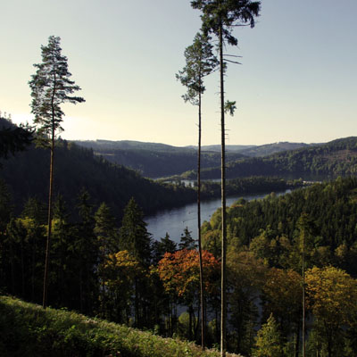 Die Saale wird an ihrem Oberlauf angestaut. Als Energieversorger dient sie hier ebenso wie als Rückhaltebecken und Erholungsgebiet.