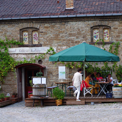 "Noch jetzt istz an dem alten Thurme, der durch seine 18 Fuss dicken Mauern der Zeit widerstanden, die Stelle sichtbar, wo einst die Brücke befestigt war." (Alexander Duncker, um 1850)