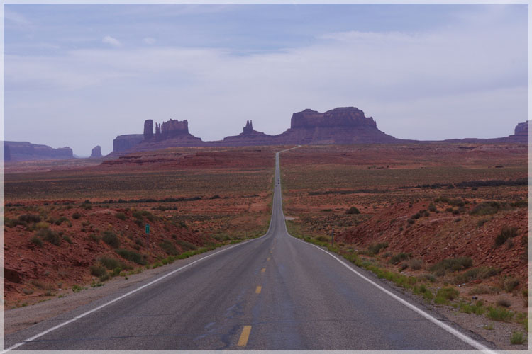 "Ich folgte der steil abfallenden Piste, die sich angstvoll an den Felsen klammerte, grüßte den Mexican Hat und überquerte im Monument Valley die Bundesgrenze nach Arizona."