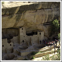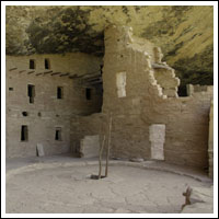 Ich ignorierte unglücklicherweise den Chaco Canyon als „Heiligen Gral der archäologischen Pueblostätten“ und stoße erst in Aztec auf die letzten Reste der verschwundenen Anasazi-Hochkultur. GEO-Epoche hatte sich vor Jahren der Indianer angenommen und einen interessanten Beitrag über jenes Volk geschrieben, dessen Name („die Alten“) erst von den Navajo stammt und deren Verschwinden ebenso rätselhaft wie deren Kultur selber ist. Die Ruinen von Aztec gehörten vermutlich zu einem weit verbreiteten Handelsnetz, dessen Zentrale der Chaco Canyon bildete und die von den Archäologen „Ausleger“ genannt werden.