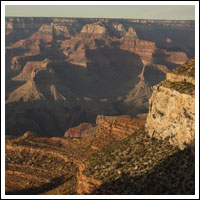 Am Desert View machte ich die erste Bekanntschaft mit dem „Volksliebling Nr.1“. Der in den 1930er Jahren erbaute Aussichtsturm wurde im Innern u.a. vom Hopi-Künstler Fred Kabotie mit mythischen Szenen und Wandmalereien gestaltet. Doch der Blick aus den angekratzten Fenstern war nicht sehr ergiebig. Allein der Blick außerhalb des Gebäudes verschaffte genügend Ehrfurcht. Berauschend und mächtig lagen die Schluchten des Grand Canyon unter mir. Tief unten formten immer noch die Fluten des Colorado-River die Szenerie. Die große Schlucht ist ein seit Millionen Jahren gestaltetes Gemälde von 460 Kilometer Länge, bis 30 Kilometer breit und 1.800 Meter tief. Während die Gegend bereits vor 3.000 Jahren besiedelt wurde, leben noch heute einige Havasupai-Indianer im Canyon. Als erster Europäer stieß García López de Cárdenas aus Spanien auf den Grand Canyon. López war im September 1540 im Auftrag des Eroberers Francisco Vásquez de Coronado auf der Suche nach den sagenumwobenen Sieben Städten von Cibola. Die wissenschaftliche Expedition unter Führung des einarmigen John Wesley Powell, der am 24. Mai 1869 mit neun Mann und vier Holzbooten in Green River, Wyoming aufbrach, wurde die berühmteste Exkursion in die Gegend, die Poewll auch ihren heutigen Namen verdankt. Im Januar 1908 wurde das Gebiet um den Grand Canyon durch US-Präsident Theodore Roosevelt zum National Monument erklärt; am 26. Februar 1919 wurde es als Nationalpark unter Schutz gestellt.
