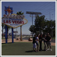 Wäre in den 1930er Jahren nicht mit dem Bau des Hoover-Damms das Arbeitercamp Boulder City entstanden und das Glücksspiel legalisiert worden, wäre das Schicksal von Las Vegas vermutlich besiegelt gewesen. Nach dem Zweiten Weltkrieg blühte die Stadt unter der Regie von Mobster Bugsy Siegel auf. Später zog Frank Sinatra mit seinem Rat Pack Dean Martin, Sammy Davis Jr., Joey Bishop, Peter Lawford und Shirley MacLaine durch die Shows und Kasinos. Elvis, obwohl bei seinem ersten Auftritt 1956 im New Frontier Hotel mit erheblicher Publikumskritik gestraft, verschaffte der Spielermetropole ab 1969 im Hotel International neuen Glanz. Heute kann man in den zahlreichen Wedding-Chapels zu Elvis‘ Musik heiraten oder sich von mehr und weniger begabten Elvis-Imitatoren unterhalten lassen. „Elvis lebt doch“ schoss es mir durch den Kopf, als „Viva Las Vegas“ aus dem Radio klang und ich den Strip hinunterfuhr. Zehn Jahre waren vergangen, seit ich das letzte Mal Elvis in Graceland besuchte. Doch der 11.September lag soweit zurück, wie ich noch Meilen vor mir hatte und bisher hatte ich noch kein Treffen mit den US-Marines.