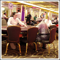 Während im Circus Circus noch in die Jahre gekommene Tänzerinnen Erfrischungsgetränke verkauften, boten im Mirage, New York New York und MGM Grand halbnackte Sirenen ihre Hilfe an. Ich bewies für die Spielerei nicht das richtige Talent. Die Spielautomaten klimperten nicht mehr mit Münzen, sondern spuckten nur noch Voucher aus. Wenige Meter neben mir setzte ein junger Amerikaner 400 Dollar an einem Roulettetisch, verlor und ging, ohne mit der Wimper zu zucken, mit seiner Freundin weiter. Eine Alte im Rollstuhl versenkte ihre Dollarscheine in einen Spielautomaten „Kenny Rogers, The Gambler“. Religion und Hautfarbe spielte keine Rolle im Spielerparadies. Schwarze saßen neben Chinesen und zockten Amerikaner und Franzosen beim Poker ab. Während draußen die Hitze der Wüste durch die Straßen strömte und die Fontänen und Wasserbecken verdunsten half, schwitzten im Excalibur und Imperial Palace Hausfrauen und Yuppies, frisch verheiratete Pärchen und Teens trotz Klimaanlage ihren Gewinnen entgegen. An den Kreuzungen boten Inder unzählige Visitenkarten von Kira und Casey, Amber und Tamara feil. Die Party ging 24 Stunden. Im MGM Grand zauberte immer noch der in die Jahre gekommene David Copperfield, während vor dem Mirage eine Büste an die Deutschen Siegfried und Roy erinnerte.