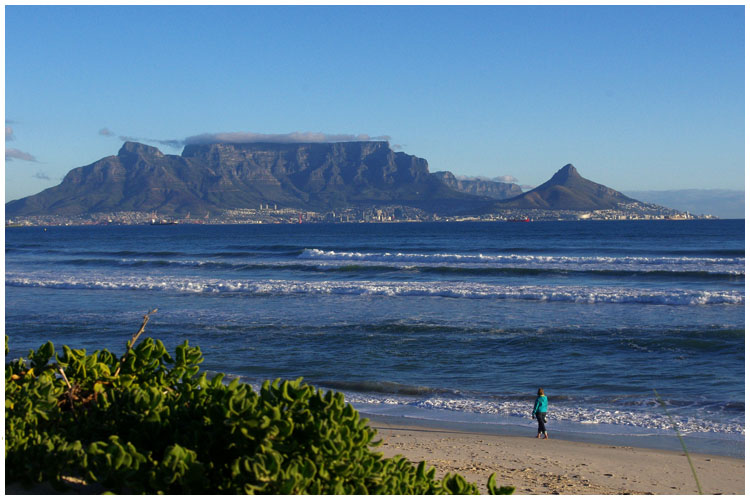 Den schönsten Blick auf das schönste Ende Afrikas gibt es vom nahegelegenen Bloubergstrand.