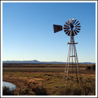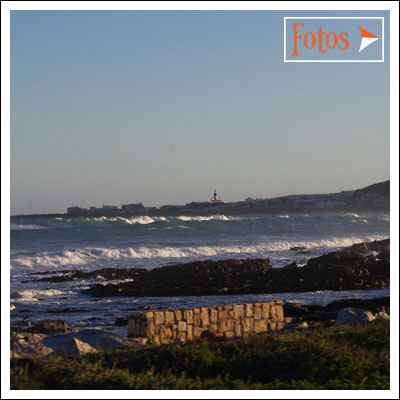 Auf dem Weg zum südlichsten Punkt Afrikas fuhren wir meistens abseits der touristischen Hauptrouten. In Hermanus machten wir einen kurzen Stop und hielten nach Walen Ausschau. Der beliebte Fischerort ist dafür bekannt, dass in den südafrikanischen Wintermonaten die Wale ihre Jungtiere direkt vor der Küste zur Welt bringen. Doch wir hatten kein Glück, spazierten noch etwas die Strandpromenade entlang und investierten weiter in die Entdeckung des Hinterlandes. Hinter Franskraal bogen wir nordöstlich nach Elim ab. In den nächsten Stunden führte uns eine staubige Schotterpiste an endlosen Farmen und Windpumpen, vielen verlassenen Bauerngehöften, Springböcken, Paradieskranichen, den sogenannten Bloukraanvoël und Dutzenden Perlhühnern vorbei, die in Südafrika Tarentale heißen. Ab und zu hüllten uns Trucks bei kamikazeartigen Überholmanövern in eine dichte Staubwolke ein.