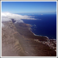 Im Bo-Kaap, dem historischen Zentrum der muslimischen Kapmalaien, holten wir uns im Biesmiellah Restaurant leckere Samosa und süße Koeksister als Nachspeise. 1780 entstanden, ist das Stadtviertel, daß offiziell Schotschekloof heißt, mit seinen bunten Häusern und dem Blick zum Tafelberg heute eine der Hauptattraktionen von Kapstadt. Der etwas über eintausend Meter hohe Tafelberg hatte in jenen Tagen sein Tischtuch meist übergezogen. Schwere Nebelschwaden fegten über das Plateau. Wir unternahmen trotzdem den Versuch um auf den Berg zu kommen, nutzen den Komfort der modernen „Table Mountain Aerial Cableway“ Schweizer Fabrikation und tauchten hundert Meter unter dem Gipfel in den dichten Nebel ein. Wir wanderten auf der weitläufigen Hochfläche, genossen die Stille und die wenigen Touristen, die es wie uns trotz dichtem Nebel, leichtem Wind und winterlichen Temperaturen auf den Berg getrieben hatte. Ab und an riss der Wind eine freie Sicht in die Wolken und erlaubte uns einen spektakulären Blick hinunter aufs Kap. Die ehemalige Gefangeneninsel Robben Island hob sich als schmaler Streifen gegen den Horizont ab. Einen Tag später wurde der Berg aufgrund heftiger Windböen gesperrt.