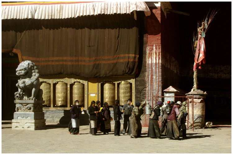"Wir hatten uns inzwischen an den ranzigen Geruch brennender Butterkerzen gewöhnt, selbst Gebetsfahnen auf Passhöhen aufgehangen und eifrig Gebetsmühlen gedreht."