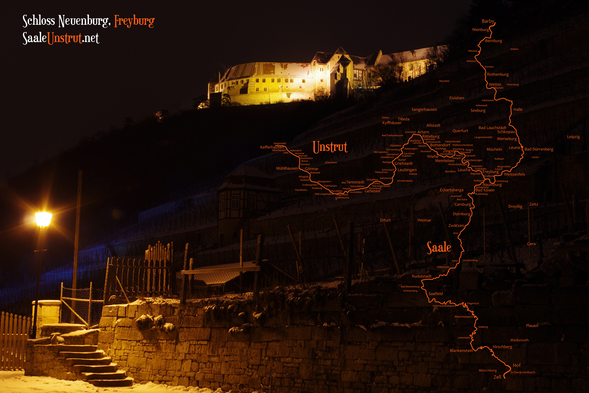 "Die Nacht duftete. Das abendliche Gewitter war vorübergezogen und hatte den Himmel hoch und rund zurückgelassen, über und über mit Sternen besät. Einige strahlten ruhig in eisiger Majestät, andere flackerten wie ferne Sturmlaternen. Aus dem Tal klang leises Brausen herauf. Die Unstrut springt mit fröhlichem Gelärm mitten in Freyburg ein Wehr hinunter. Im Neubauerndorf sangen junge Mädchen. Aus regennassen Bäumen schlugen die letzten schweren Tropfen dumpf auf den Weg. ..." ----------------- Brömel, Hege, "Besuch an Saale und Unstrut"