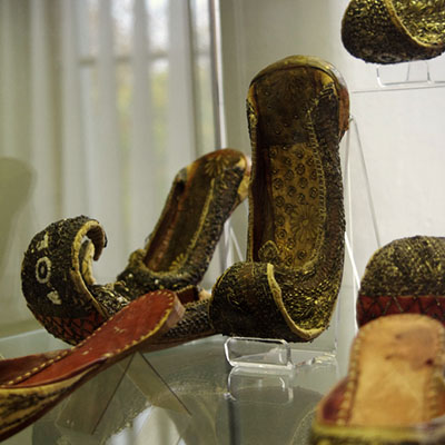 "Schuhe und Weißenfels - das gehört zusammen. Kein anderer Industriesektor hatte in Weißenfels eine größere Bedeutung als die Schuhproduktion. Zwischenzeitlich mit rund 30.000 Beschäftigten, versank die Schuhproduktion in den 1990er Jahren in die Bedeutungslosigkeit. Ein Teil der Schuhausstellung widmet sich daher vor allem der Entwicklung der Schuhindustrie in Weißenfels."