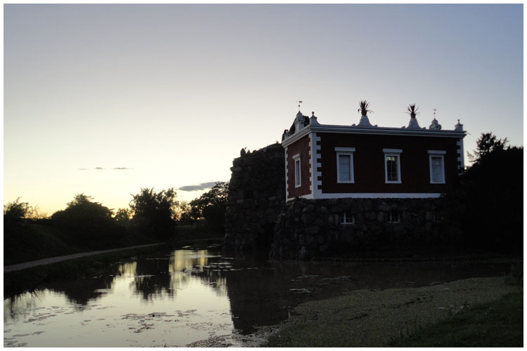 Der „Stein“ wurde in den späten 1780er Jahren nach Plänen Leopold III. als Erinnerung an seinen Aufenthalt am Golf von Neapel als künstliche Insel erbaut."