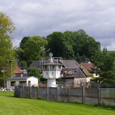1966 wurde die 700 Meter lange Betonsperrmauer durch den Ort gezogen, die 23 Jahre lang das Dorf teilte. |