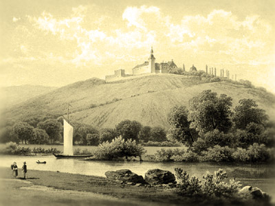 "... Da nahm Ludwig den Jägerspieß selber in seine Hand, durchrannt den Pfalzgraf Friederich unter der Linden zur Hand. Er sprach zu seinem Knechte: Reiten wir zur Weißenburg, da sind wir wohl gehalten nach unserm Herz und Mut." Da er nun gegen die Weißenburg kam, wohl unter das hohe Haus, da sah er die falsche Fraue mit Freuden zum Fenster aus ... Er zog aus seiner Scheiden ein Schwert von Blut so rot. "Sieh da, du edle Fraue, ein Zeichen von seinem Tod." Sie rang ihre weißen Hände, rauft aus ihr gelbes Haar: "Hülfreicher Christ vom Himmel, was hab ich nun getan. ..." (aus der Marsburger Chronik)