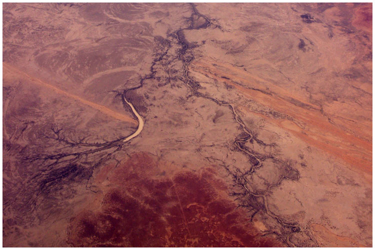 Wie Adern ziehen sich die Flußläufe, die teils monate- und jahrelang ausgetrocknet sind, durch die unendlichen Weiten des australischen Outbacks. |